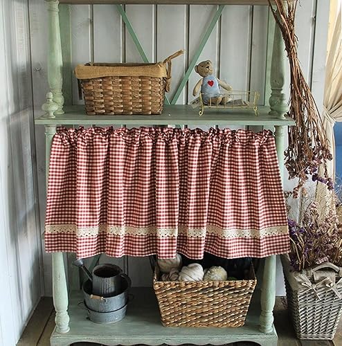 Rideau de cuisine en coton rouge et blanc à carreaux pour petite fenêtre, café, bistrot (carreaux rouges, 130 cm (largeur) x 40 cm (hauteur)