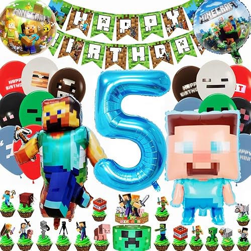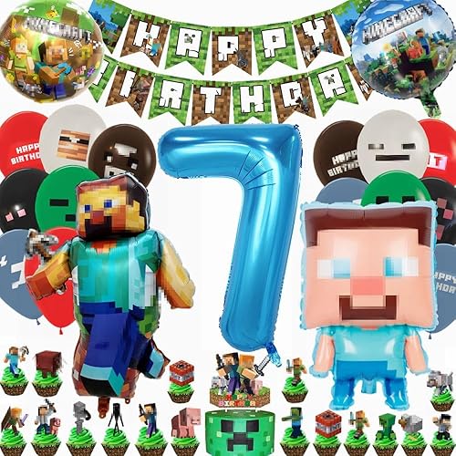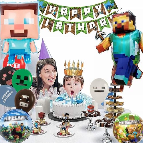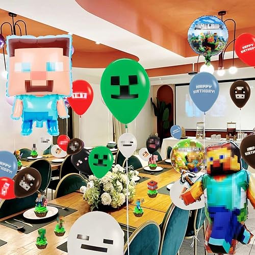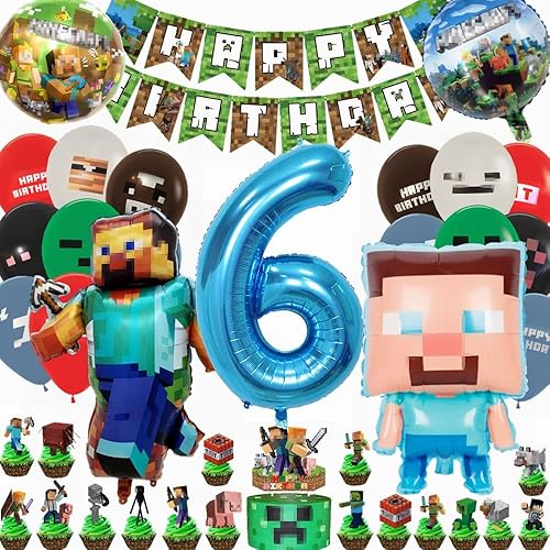 Kiwochy Décoration d'anniversaire d'enfant 6 ans Ballon 6ème anniversaire Décoration Miner Gamer Anniversaire Fête Décoration Jeu Ballon Miner Gamer Anniversaire Enfant Bannière Cupcake Toppers