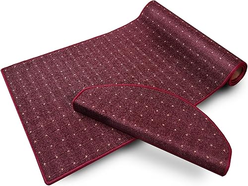 casa pura Marchette d'escalier Intérieur - Tapis de Marche d'escalier - Dos Adhésif - Antidérapante - Format et Couleur au Choix - Rapido - Demi-Lune (23.5x65 cm) - Rouge 15 Pièces