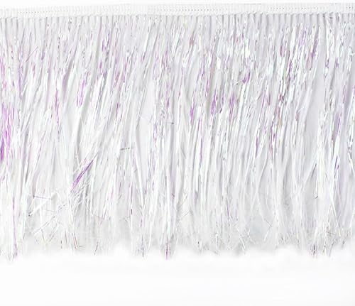 Yalulu Bordure à franges à paillettes de 10 m - Garniture en dentelle métallique pour loisirs créatifs et décoration latine (argenté)