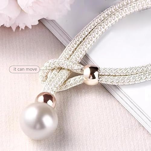 FURNJOYLIFE 2 Pièces Embrasse pour Rideaux,de Rideaux avec Perle Attache Rideau,pour Maison Bureau Hôtel,Blanc Lait
