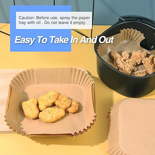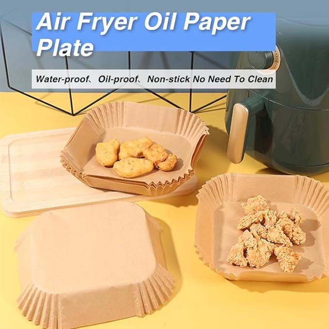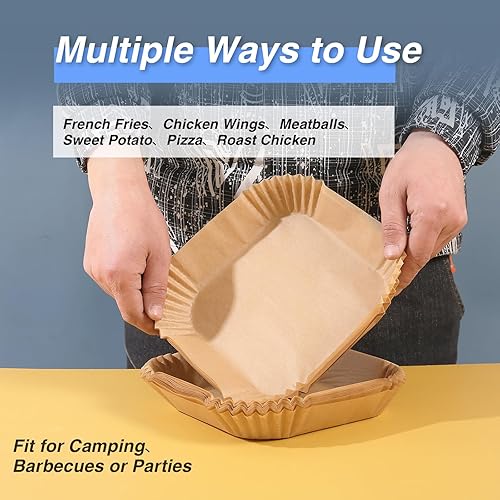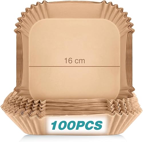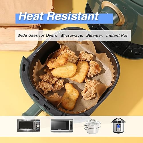 Papier de Cuisson pour Friteuse à Air, Qhou 100 Feuilles Friteuse à Air en Papier Grillé Papier de Cuisson pour Friteuse à Air Résistant à L'eau et à L'huile Pour Air Fryer Micro-ondes Steamer
