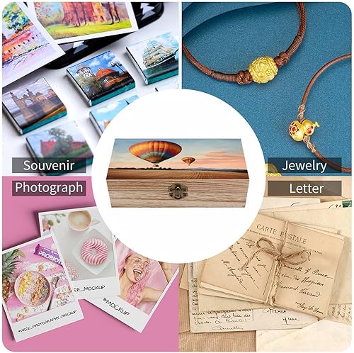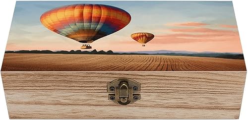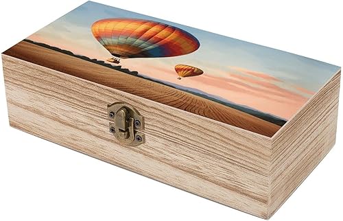 LQPMNK Boîte de rangement en bois, motif montgolfière, boîte à bijoux, boîte à souvenirs en bois, boîte de rangement décorative, organisateur de bureau