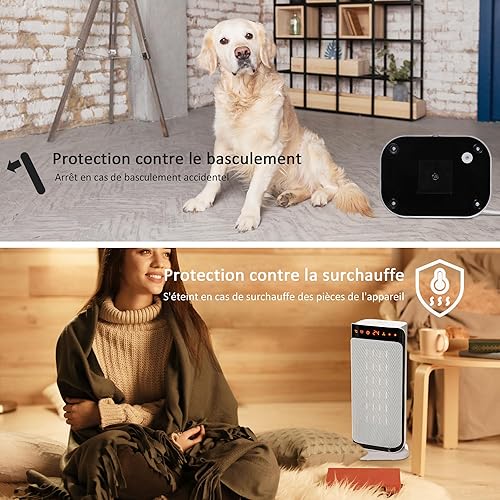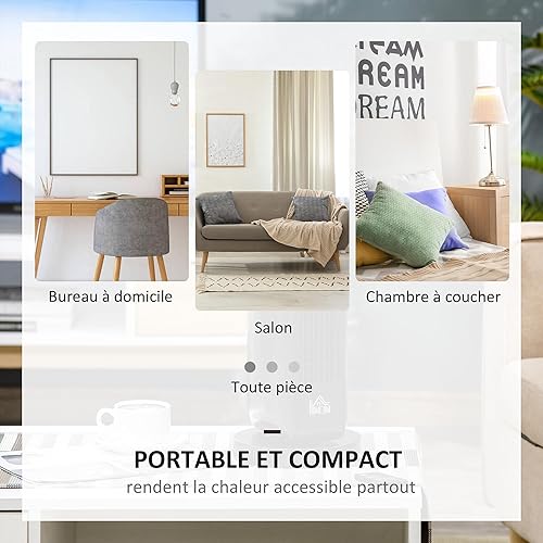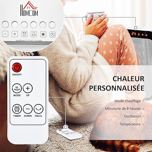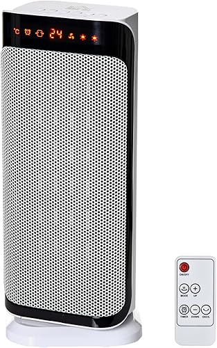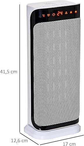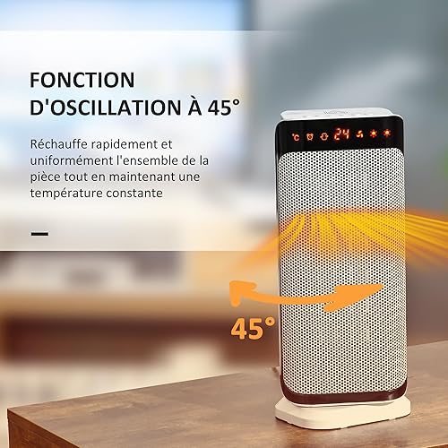 HOMCOM Chauffage d'appoint 1000W/2000W, radiateur électrique céramique, PTC chauffage électrique, 3 modes, 8H minuterie, 45° oscillation, télécommande, protection contre surchauffe basculement, blanc