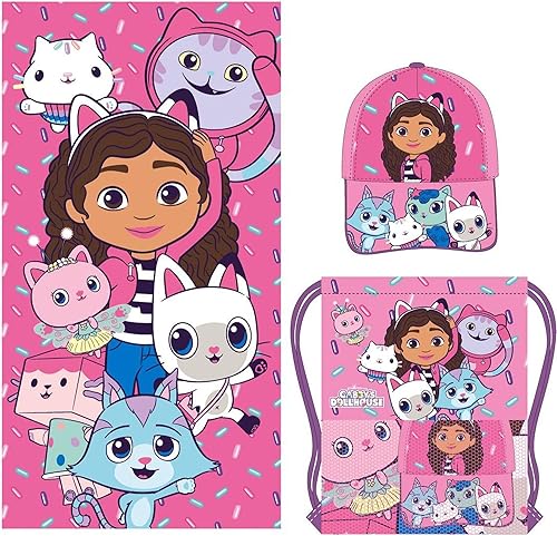 CERDÁ LIFE'S LITTLE MOMENTS Gabby's Dollhouse Set de Serviettes avec Sac – Serviette de Bain pour Enfant & Sac de Gym Pratique au Design Mignon