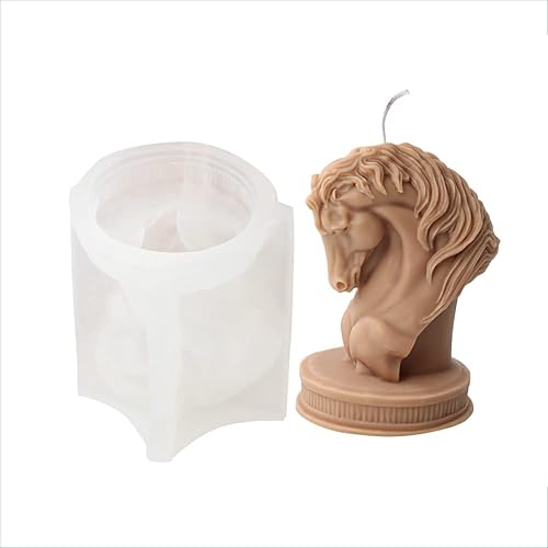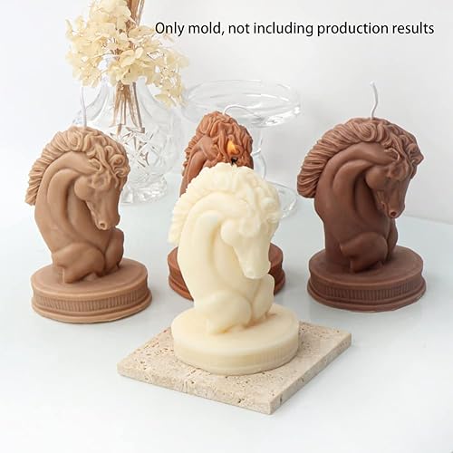 Wernfale 1 PCS Cheval Tête Statue Bougie Silicone Moule Buste Équitation Sculpture Art Figurine Animal Poney Bougie Moule Bougie Moule