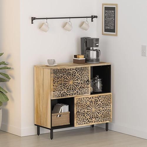 vidaXL Armoire Latérale, Buffet avec Pieds, Meuble de Rangement, Organisateur de Salon Salle de Séjour Maison, Bois Massif de Manguier
