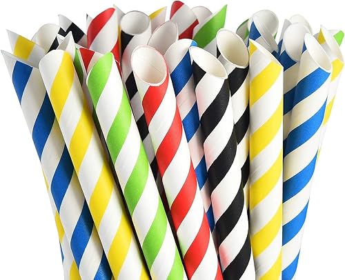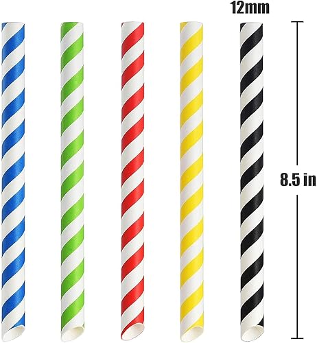 Alink - Lot de 50 pailles à bulles - En papier - 12 mm - Arc-en-ciel - Biodégradables - Pour thé et milkshake