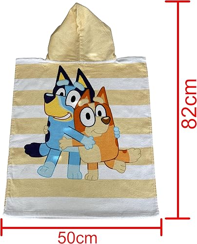 Bluey Poncho à Capuche Bingo Serviette de Plage pour Enfants Serviettes de Bain pour Enfants Personnage Émission TV Cadeau pour garçons Filles 50 x 115 cm
