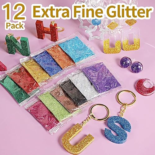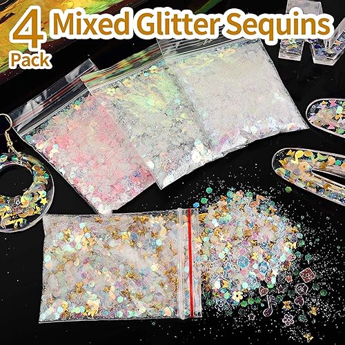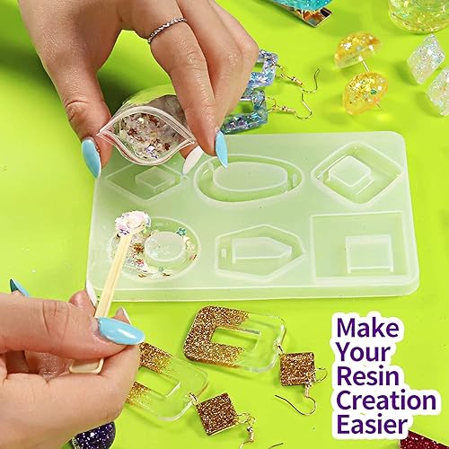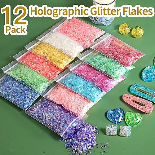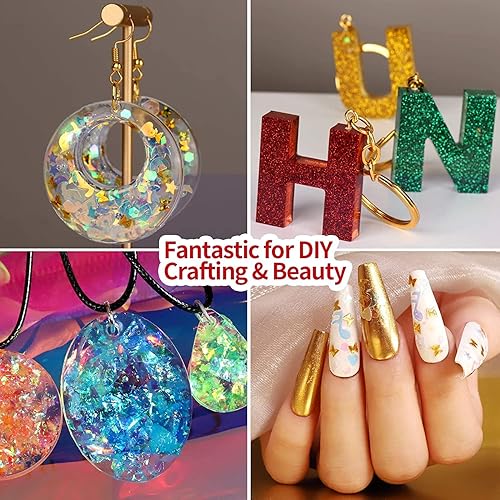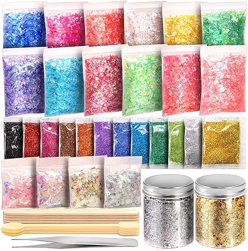 Leobro Lot de 41 accessoires de décoration en résine époxy avec poudre de paillettes, paillettes, flocons de feuille d'or, coquillages, bricolage, cuillère, pince, nail art, slime