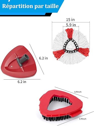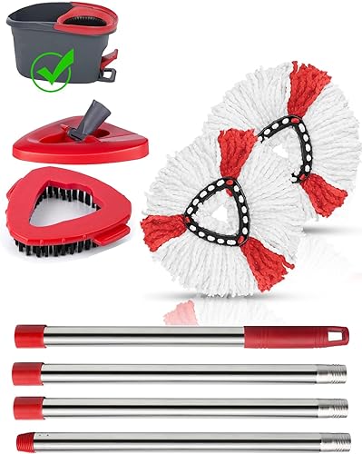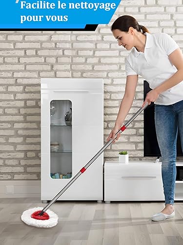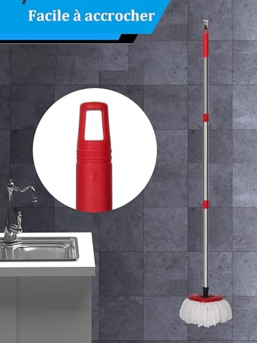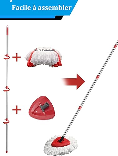 Ensemble de têtes de balai à franges de rechange compatibles avec le système Vileda Turbo, 2 serpillères en microfibre, 4 sections en acier inoxydable avec manche de 76,2 à 147,3 cm, 1 housse de tête