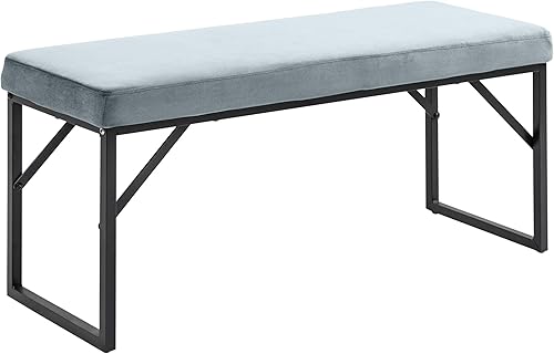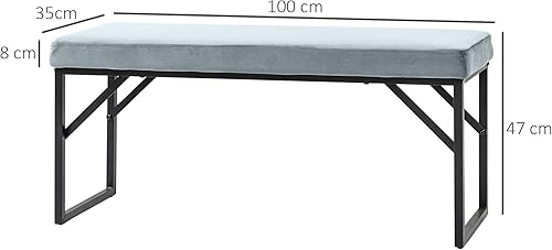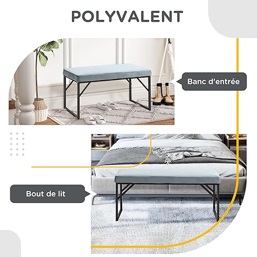 HOMCOM Banc Bout de lit Banquette Banc en Tissu Velours Cadre en Acier - 100 x 35 x 47 cm - Bleu Clair
