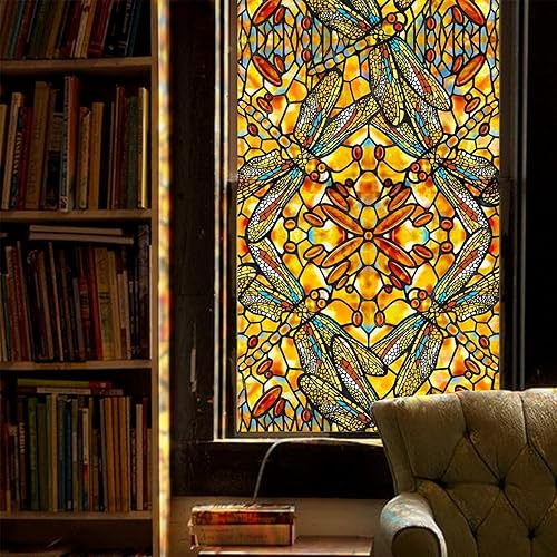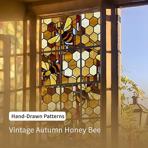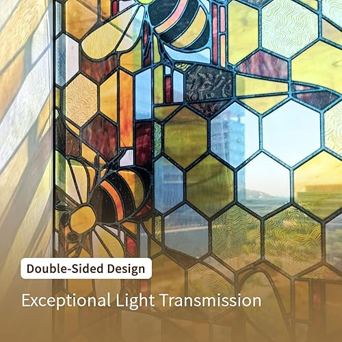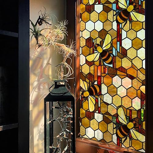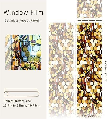 funlife dessiné à la Main Film vitrail, Abeille Double Face Film electrostatique vitre, Réutilisable fenetre 43X300CM, Convient pour Les Cuisines, Les salles de Bains, Les Chambres à Coucher
