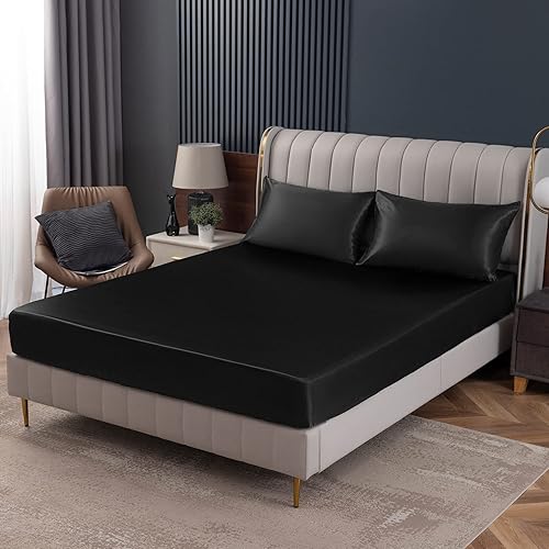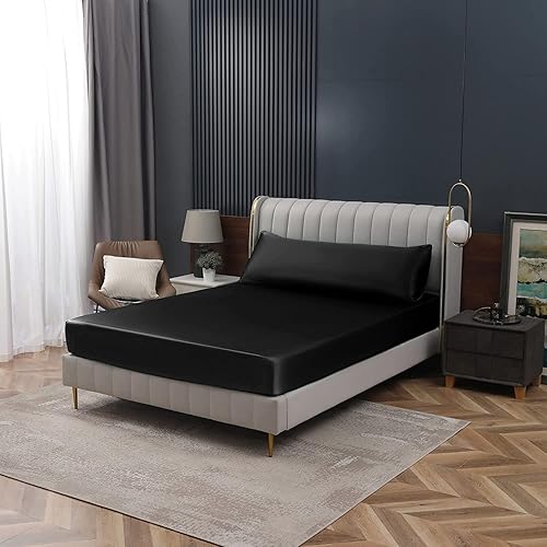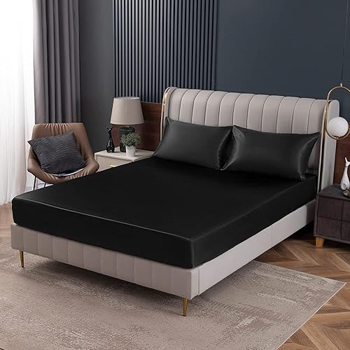 Homiest Drap plat en satin vert noirâtre – Literie de luxe et ultra douce pour matelas double