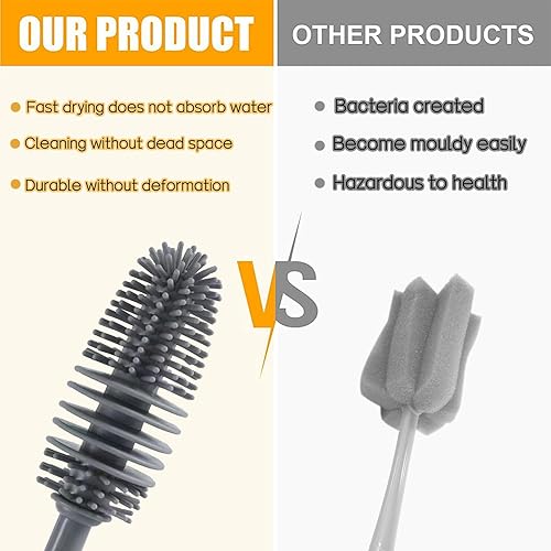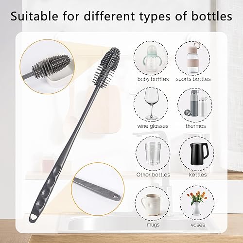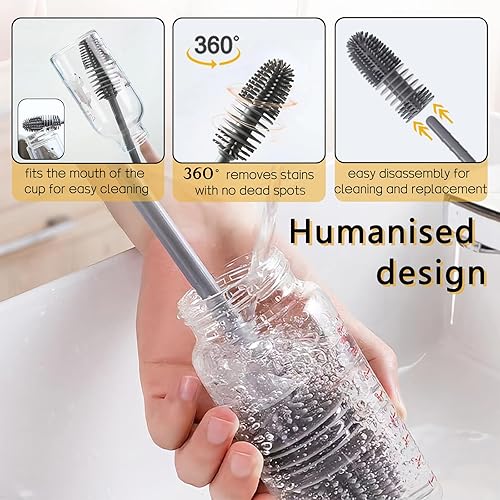 Lot de 3 brosses de nettoyage en silicone pour bouteilles de sport, bouteilles d'eau, vases et verrerie (3, gris)