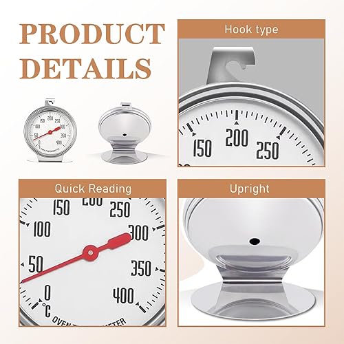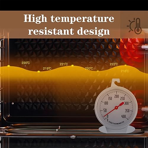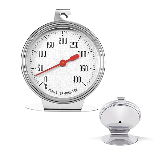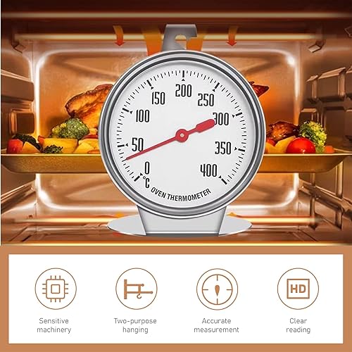 Thermomètre de Four Thermomètre de Four en Acier Inoxydable - Grand Cadran Facile à Lire Plage de Température 0-400°C Suspendu ou Monté Idéal pour Cuisiner sur le de Cuisine et le Gril