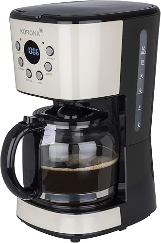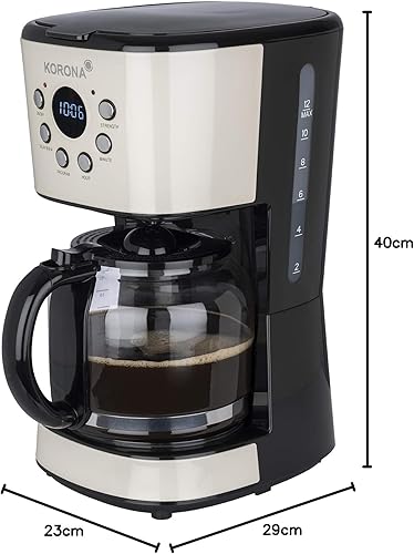Korona 10666 Cafetière rétro | Crème | 1,5 l | Machine à café filtre | Écran LCD | Minuterie | Machine à café automatique avec filtre permanent