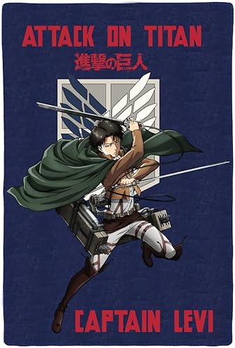 SAHINLER créateur d'univers Attaque des Titans - Plaid Attaque des Titans Livaï 110x130 cm - 100% Polyester – Bleu Marine