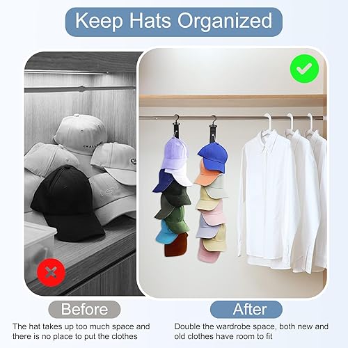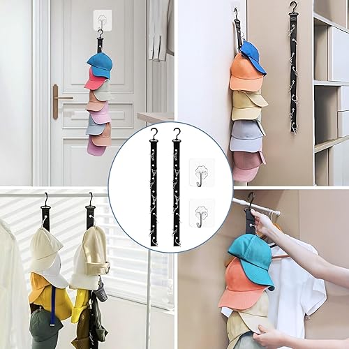 AUNHOKE 2 Pièce Porte Casquette, Range Casquette Organisateur de Casquette à Suspendre de Placard avec Crochet, Support Casquette de Baseball Convient aux Murs, Portes, Armoires