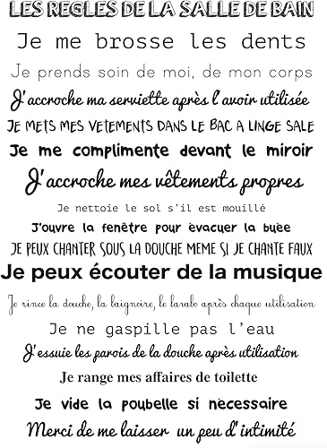 Décorations murales adhésives 48*68 Les Règles de La Salle de Bain, Polyvinyle, Noir, 48 x 0.1 x 68 cm