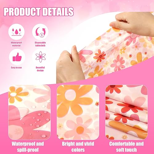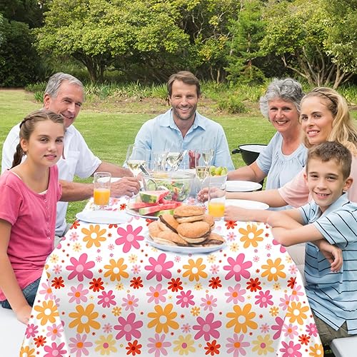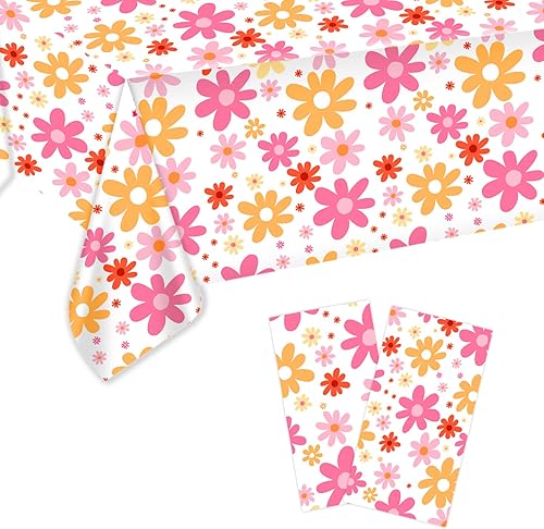 XIHIRCD 2pcs Nappe Marguerite, 137x274 cm Nappe Florale Bohème en Plastique Nappe Rectangulaire Jetable Fleurs Hippie Vintage pour Anniversaire 70 Ans Baby Shower Fête de Mariage