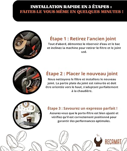 RECAMAT® Joint porte-filtre de rechange pour cafetière Create & Zylan & Swan & Princess. Pièce de rechange durable et résistante à la chaleur