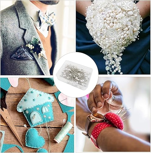Lot de 100 épingles à coudre avec tête, 55 mm de long, conviennent pour la couture de vêtements, la fabrication de bijoux, la décoration DIY (blanc)