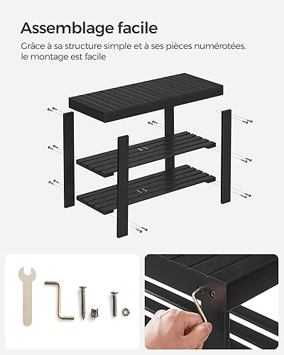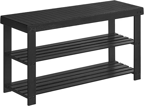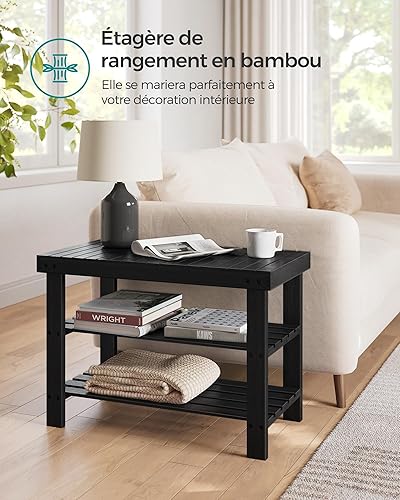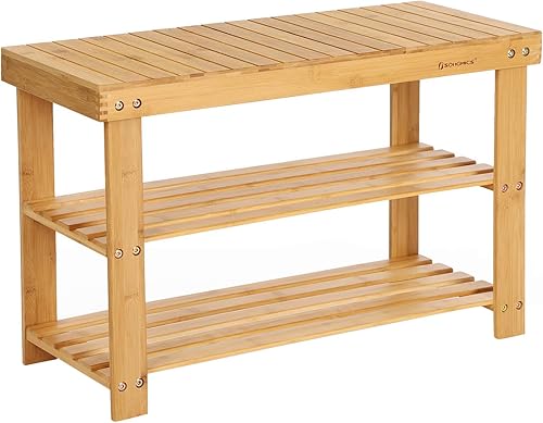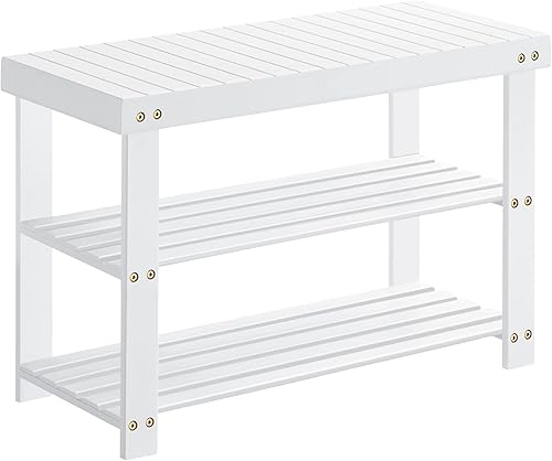 SONGMICS Banc de Rangement pour Chaussures en Bambou à 3 Niveaux, Banc d'Entrée, Support jusqu'à 130 kg, 28,7 x 90 x 45,3 cm, pour Entrée, Salle de Bain, Chambre, Blanc Nuage LBS090W01