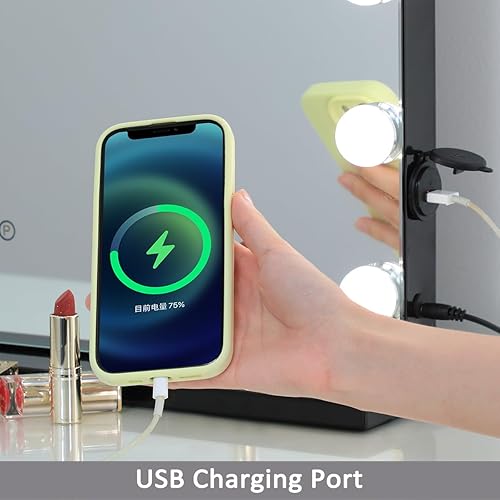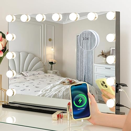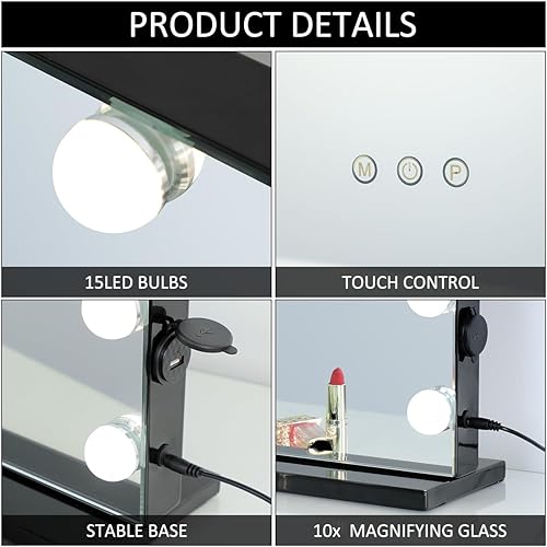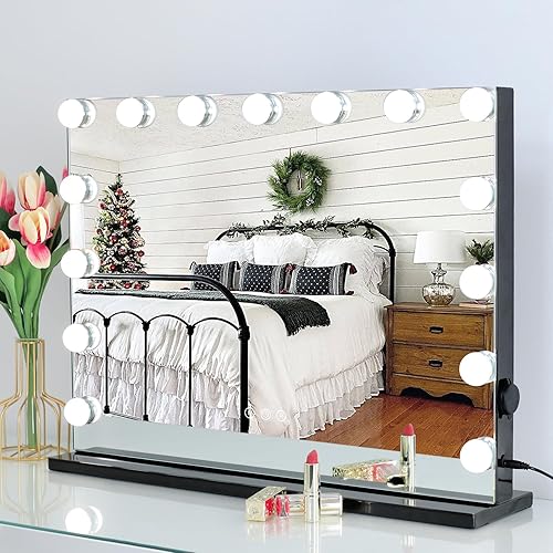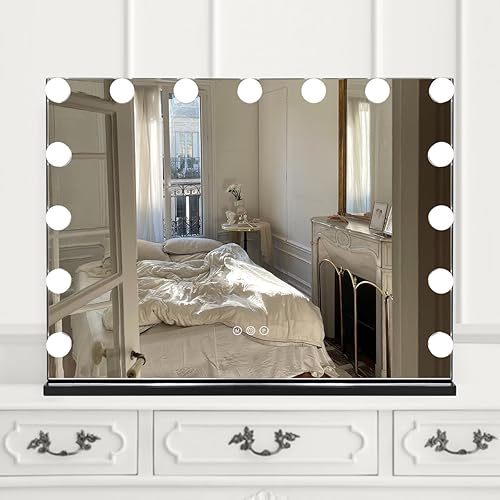 WAYKING Hollywood Miroir de Maquillage avec éclairage LED, contrôle Tactile, Grand Miroir cosmétique avec 12 Ampoules, Plateau de Table, Miroir cosmétique Blanc (58X46 CM-Noir)