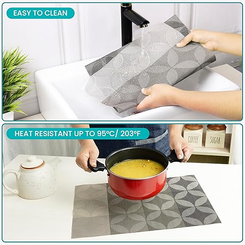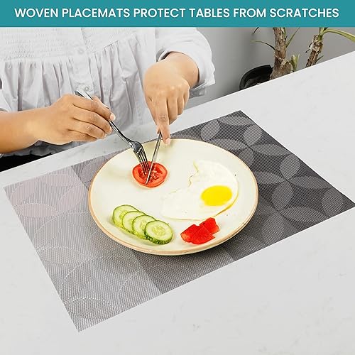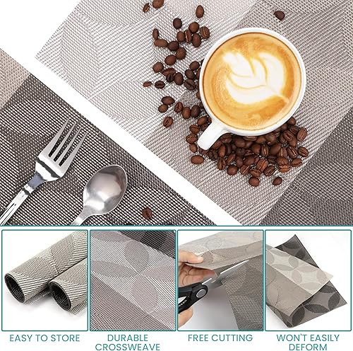 Belle Vous Lot de 6 Sets de Table en PVC Argenté - Sets de Table Antidérapants Faciles à Nettoyer - Résistants à la Chaleur et Imperméables - Cuisine - Table à Manger - Restaurant