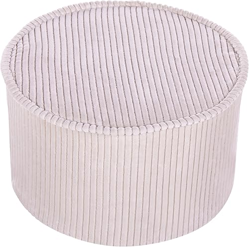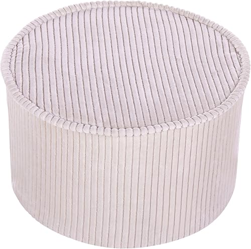 Pouf en Coton Velours Côtelé Rond Housse Amovible Lavage en Machine Beige Clair Zikria