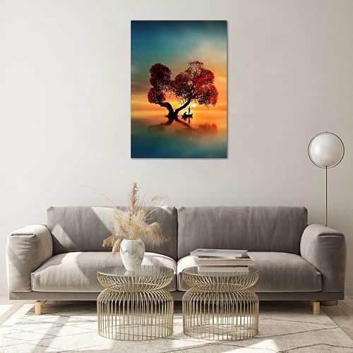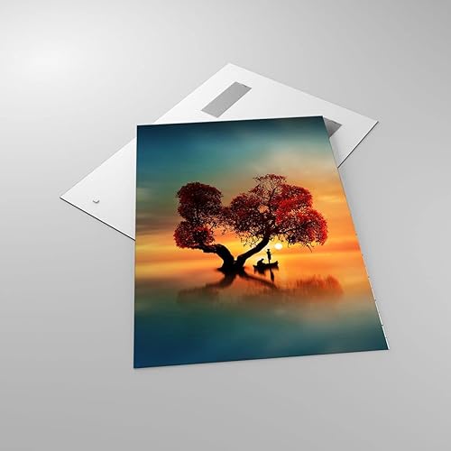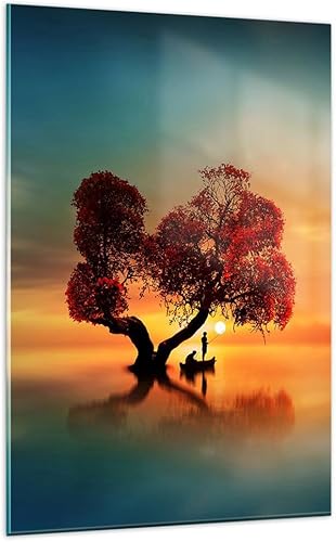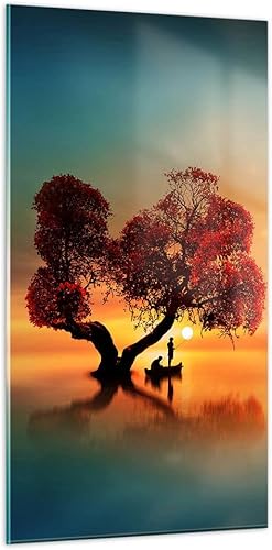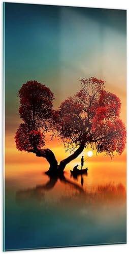Moderne Impression sur Verre 55x100cm Image Tableau en Verre Decoration Murale lago natura notte Grand Tableaux Decoratifs Muraux Chambre Cuisine Vertical Deco Salon Art Wall Decor GPA55x100-3458