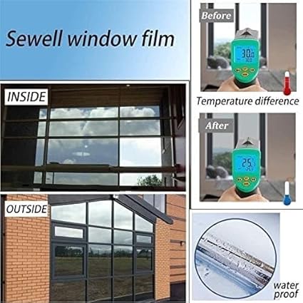 SRBLRM Film pour fenêtre, Film for fenêtre unidirectionnel, Film for fenêtre intimité, Film Miroir réfléchissant bloquant Le Soleil, Autocollant en Vinyle Anti-UV for la Maison et Le Bureau(100CMx1m)