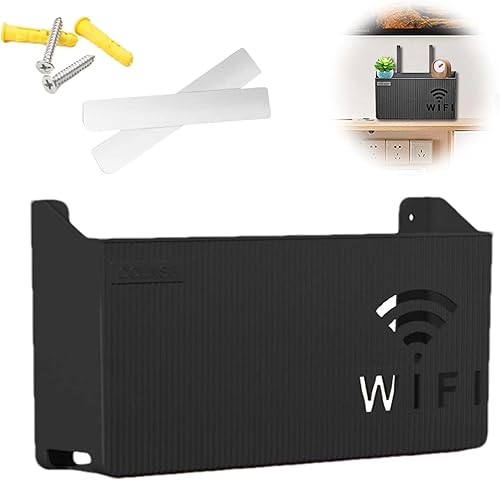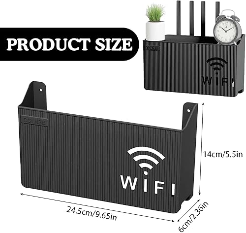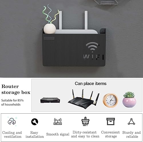 MisFun Boîte de Rangement Murale pour Routeur WiFi des CâBles, Support Mural, Étagère Flottante, WiFi Support Box, Noir Décoratif Flottant Rack, pour Le Bureau à Domiciler Décor Murale