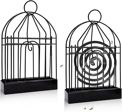 pangutheos Cage à Oiseaux Support Spirale Anti Moustique, 2 Pièces Porte Spirale Anti Moustique avec Anneau de Suspension, Support Bobine Anti Moustique Métal pour Maison Camping Jardin