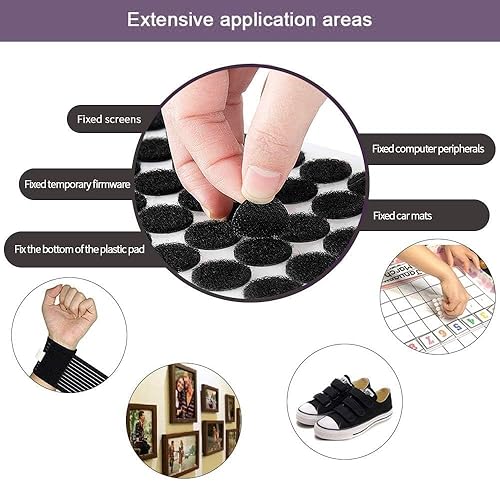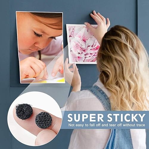 O-Kinee 540 Paires Autocollant, 20mm Scratch Autocollant Adhésif, Adhesif Double Face Rond pour Cadres Photos Installation, Bande Souple Aimantée Autocollante