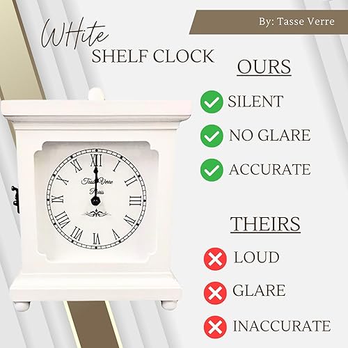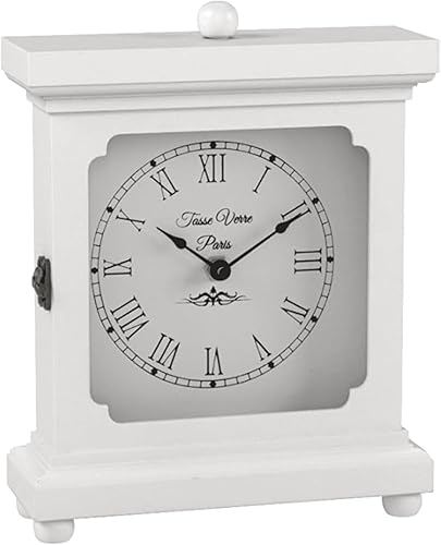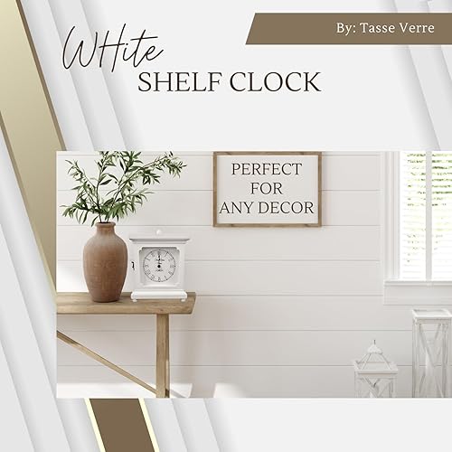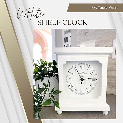 Tasse Verre Horloge Blanche pour étagère, Table ou Bureau 22,9 x 17,8 cm – Décoration Rustique en Bois silencieuse – Bureau, Chambre à Coucher, cheminée, Salon, Salon Familial. Fonctionne avec Piles