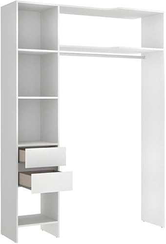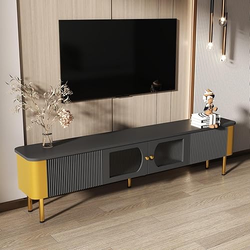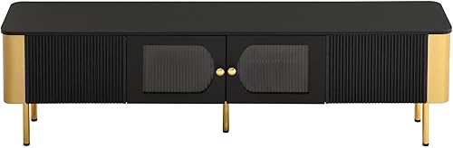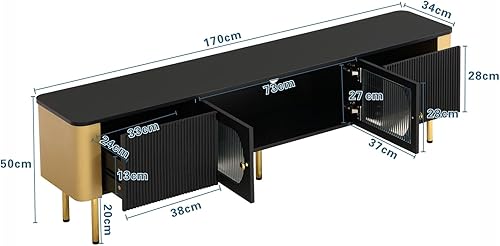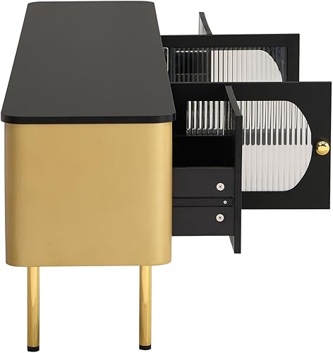 KOMHTOM Meuble TV Moderne avec 2 Portes et 2 Tiroirs, Meuble de Rangement avec Poignées et Pieds de Support dorés, 170x45x50cm (Blanc)