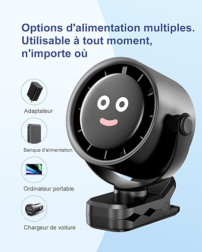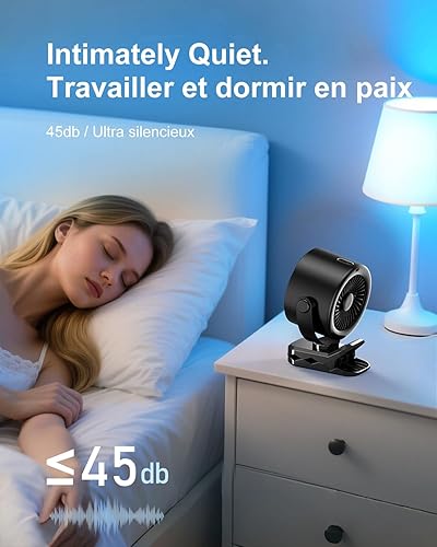 Clip Portable Sur le Ventilateur, Rotation 360° Silencieux USB Rechargeable Poustre Baby Fan Bureau Petit Ventilateur Avec Clip 5 Vitesses Ventilateur de Camping pour La Chambre, Bureau, Cuisine
