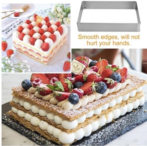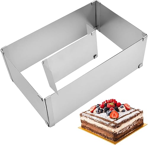 Cadre Patisserie Rectangulaire, Cadre Rectangulaire Réglable, 10cm Moule à Gâteau en Acier Inoxydable avec Diviseur, Moule Patisserie Extensible 18 à 33cm 28 à 53cm pour Mousse, Gâteaux