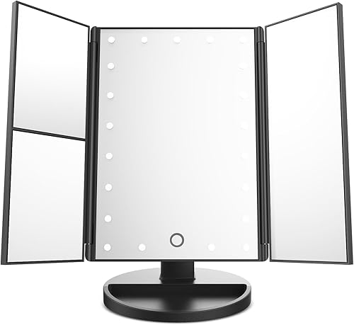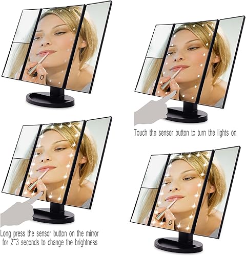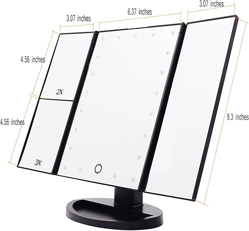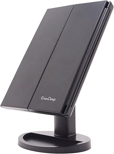 EmaxDesign Miroir de Maquillage 21 LED Lumineux Miroir de Cosmétique avec Triple de Grossissant Écran Tactile, Charge USB Rotation Libre 180 °Miroir de Table de Comptoir (Noir)
