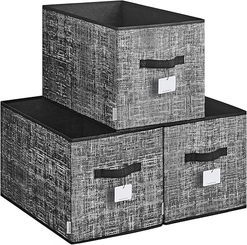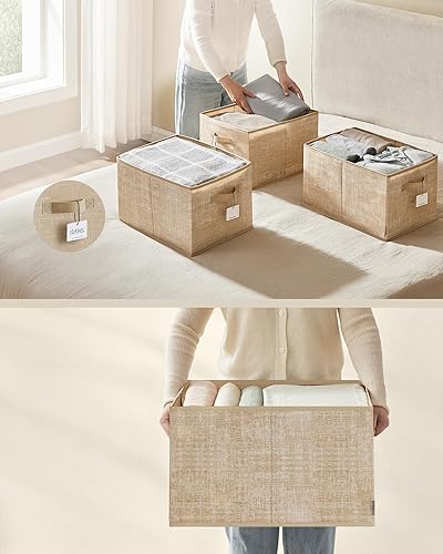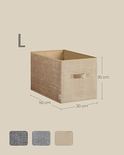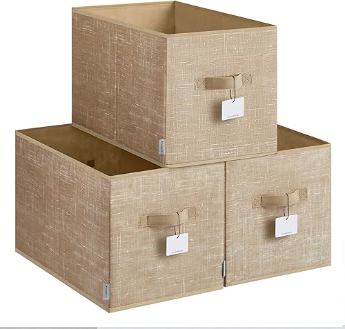 SONGMICS ROB450K01 Lot de 3 boîtes de rangement pliables en tissu pour armoire, 2 poignées, étiquette, pour chambre à coucher, salon, beige sable
