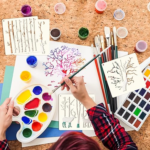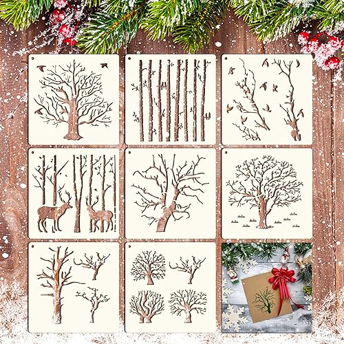 Grevosea Lot de 8 pochoirs en forme de tremble - Réutilisables - Branches inversées - Naturel - Pour peinture sur bois, toile, mur - 15 x 15 cm