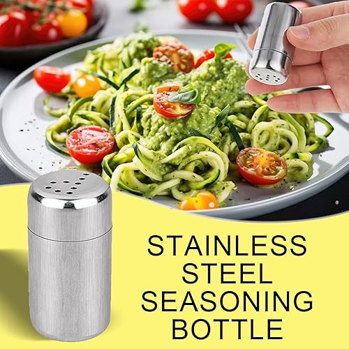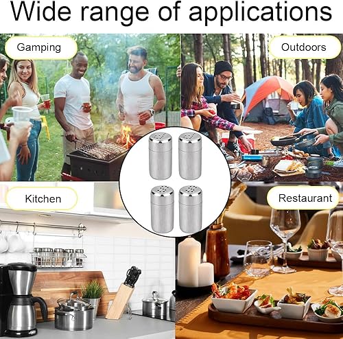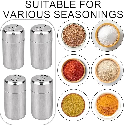 KOZOY Salieres et Poivrieres en Acier Inoxydable, 4 Pièces Mini Salières avec Couvercle, 5 ml Sel et Poivre de Table Récipient à Bouteille pour Camping, Restaurants et Barbecues en Plein Air