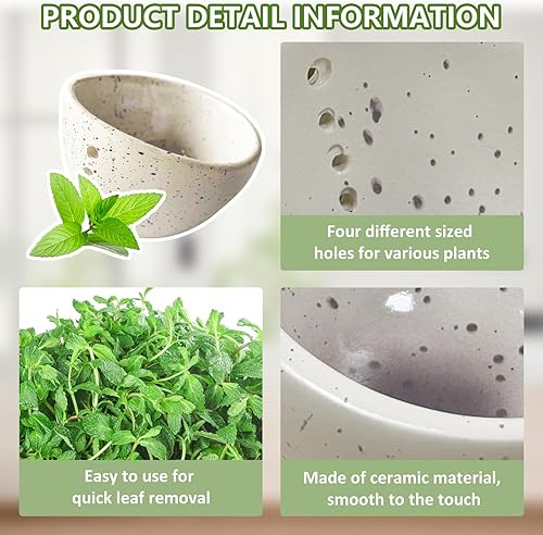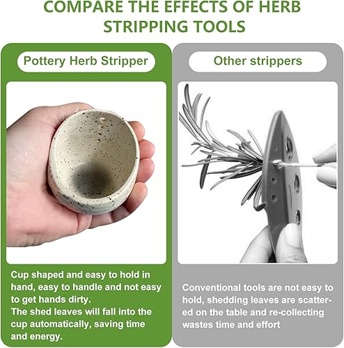 SPERMUOY Pottery Herb Stripper Bowl, Grattoir à herbes en poterie, ustensiles de cuisine pour enlever les feuilles