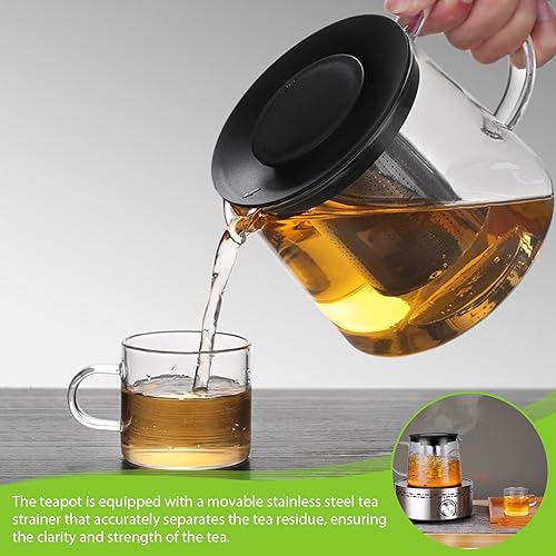 Théière en verre de 1,5 l avec infuseur en verre borosilicate - Avec couvercle - Idéale pour la préparation de thés en vrac