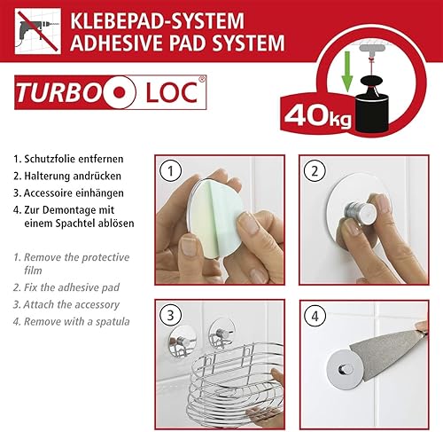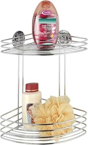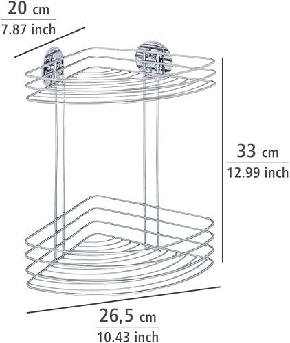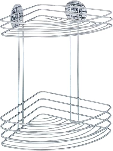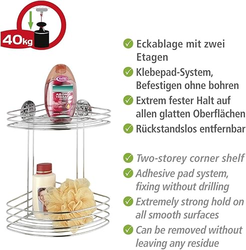WENKO Turbo-Loc® étagère d'angle à 2 niveaux - fixer sans percer, Acier, 26.5 x 33 x 20 cm, Chromé