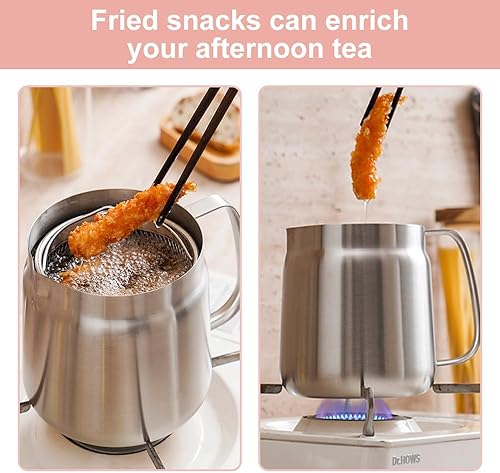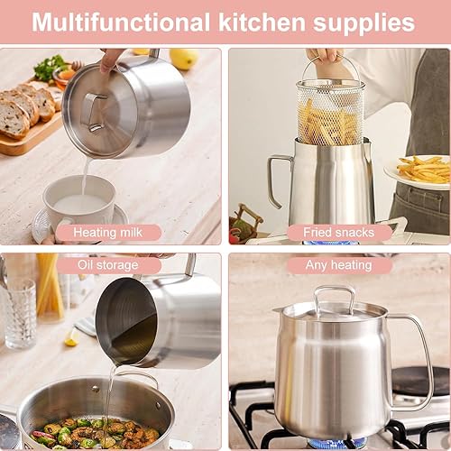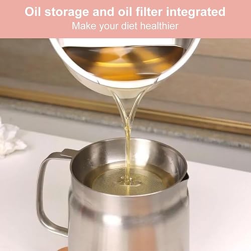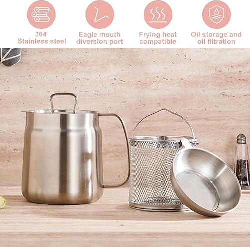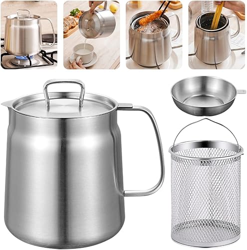 Dhqkqg Pot de Filtre à Huile en Acier Inoxydable 304, 2L Polyvalent Récipient à Huile avec Filtre à Mailles Fines et Panier à Friture, Récipient à Graisse de Bacon pour Stocker Huile de Friture