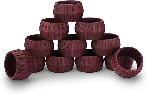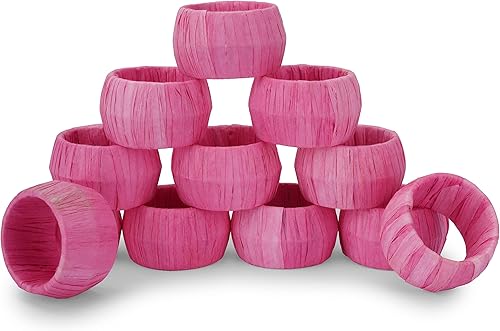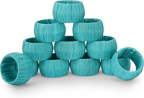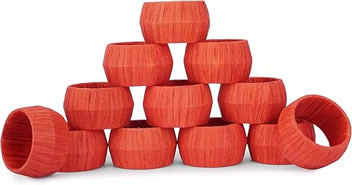 Ajuny Lot de 12 Ronds de Serviette Décoratifs en Raphia et Rotin Orange Fabriqués à la Main pour Décoration de Table Salle à Manger Mariage Dîner Fête