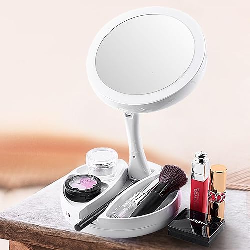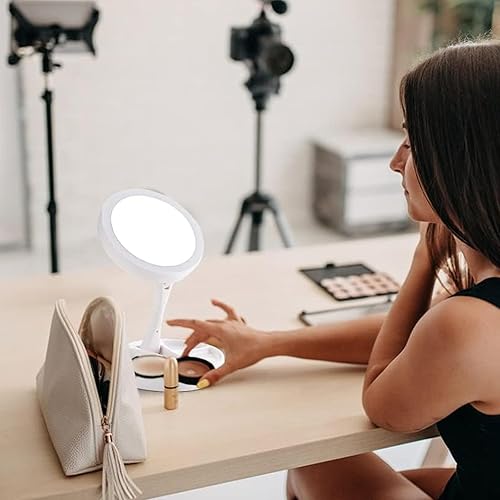 Ieron Miroir de Maquillage avec lumière LED, Miroir grossissant 1/10X, Miroir cosmétique Double Face, Miroir Pliable réglable pour Voyage